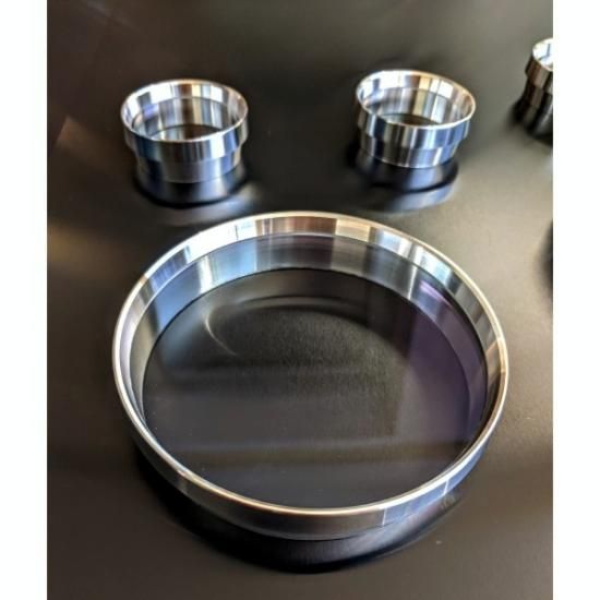 反射防止ガラスレンズとディープスタイルのアルミ削り出しリングが、独立メーターのように個々のメーターを シャープに彩ります。(純正の透明アクリルカバーは取り外して使用します。)